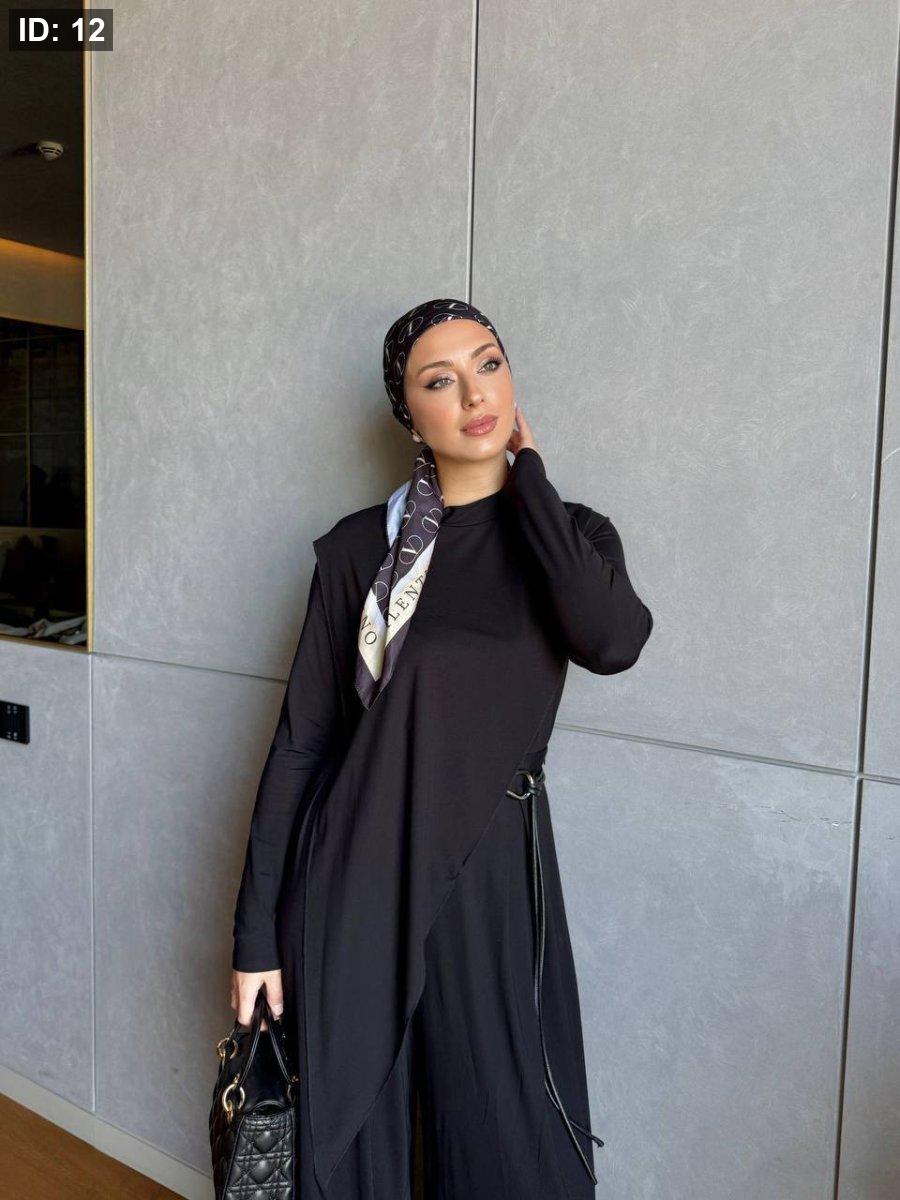 بلوزه تونيك طويله بامكانك تلبسيها فوق البنطلون، القشاط المميز ضمن الطقم🤩
