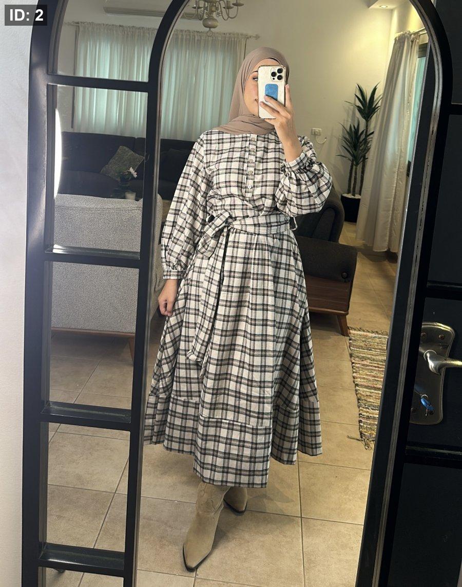 فستان كاروهات شتوي