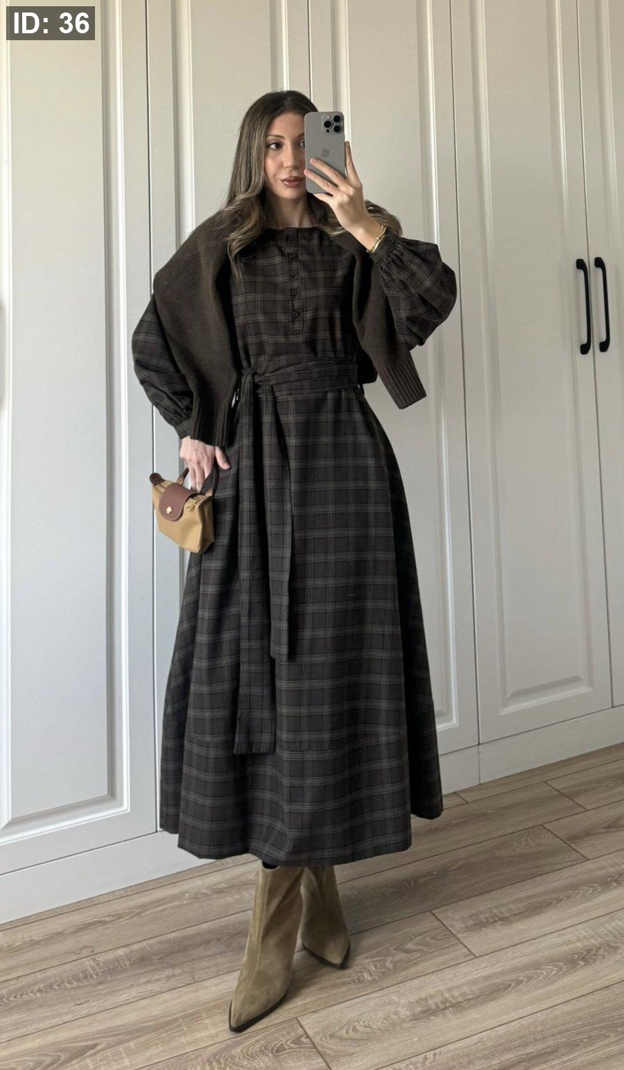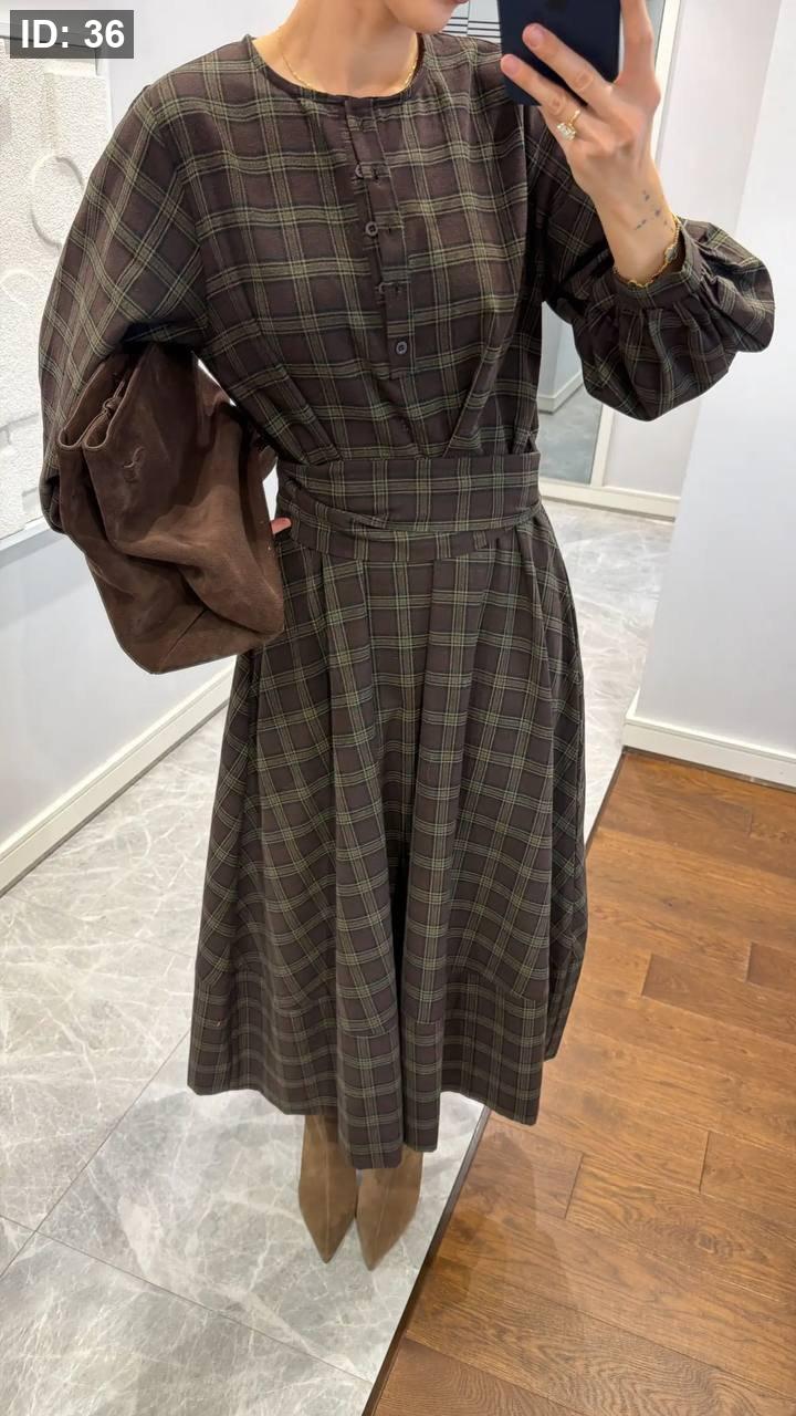 فستان كاروهات بني